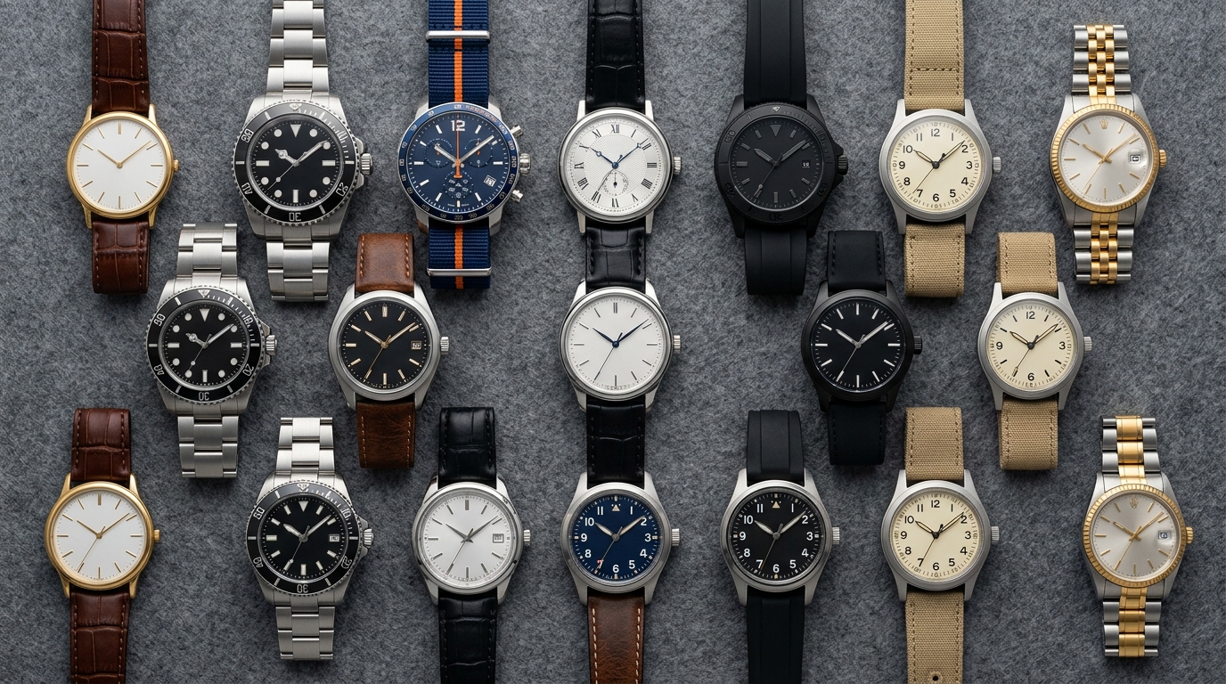 ロレックスやオメガといった高級ブランドは数十万円以上の買取額になることもある一方、ノンブランドや量産品のファッションウォッチはかなり低くなる傾向があります。電池切れの場合は、これらの相場からさらに電池交換代として数百円〜数千円が差し引かれるイメージです。