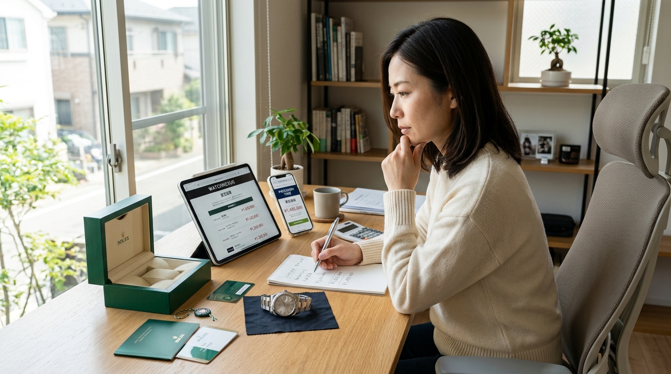 補足:ここで紹介した買取相場はあくまで一般的な目安です。実際の査定額は時計の状態・付属品の有無・型番・製造年代・市場の需給バランス・為替相場などによって大きく変動します。正確な査定額については必ずKOMEHYO公式サイトの時計買取ページや店頭でご確認ください。最終的な判断は専門家(査定士)にご相談されることをおすすめします。